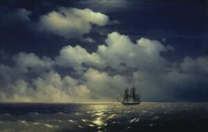 Ivan Aivazovsky’nin bu yapıtı, ışığı çevreleyen kara bulutlardan zar zor engellenebilen parlak, neredeyse kör edici bir dolunay tarafından aydınlatılan bir gemi enkazını resmetmektedir. Uzakta geminin felaketini izleyen karanlık figürler vardır. Yakın bir bakış ayrıca talihsiz gemiden kaçan figürleri ortaya çıkarmaktadır. Ayvazovski, deniz resimleriyle uluslararası beğeni kazanmıştır ve gece temaları harikadır.