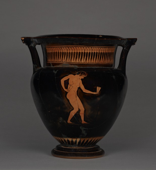 Krater – Krater, geniş bir ağzı ama daha küçük ve ağır bir ayağı olan büyük bir kasedir. Etimolojik olarak krater terimi Yunanca “karıştırmak” fiilinden gelir. Bugün Türkçede de kullandığımız krater kelimesinin kökeni ise işte bu vazodur.