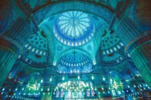 Muazzam kubbeler, büyüleyici mukarnas tonozlar ve kendine özgü kemerlerin yanı sıra bu göz alıcı süslemeler İslami yapı geleneğinin üstün doğasını gözler önüne seriyor.