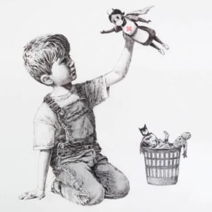 En yeni çalışması, genç bir çocuğun diz çökerek hemşire olarak giyinmiş -maske ile birlikte- bir bebekle oynadığı halini gösteriyor. Bu, sağlık görevlilerinin nasıl kahraman olarak kutlanması gerektiğini yansıtıyor. Çocuğun yeni rol modeliyle oynamayı tercih etmesiyle birlikte bu durum, Batman ve Spiderman gibi kurgusal kahramanların bir sepet içinde durmasıyla destekleniyor.