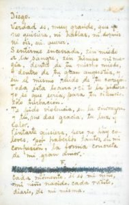 McKnight, Michelangelo’nun el yazısının “sanatsal, neredeyse müzikal” doğası üzerine konuşuyor ve kararlılığın bir işareti olarak görülebilecek titiz ve hatta temel çizgiye işaret ediyor. Kelimelerin içindeki ve harflerin arasındaki kopukluklar, aşırı sezgiselliğin bir işareti olabilir.