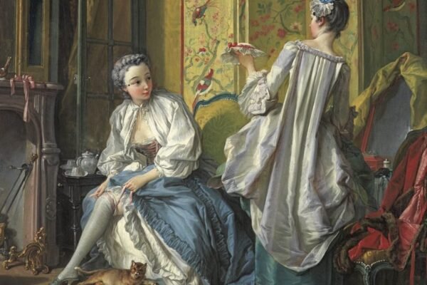 Ufuk çizgisi Clothilde’ın şapkası ile bölünmüştür. Burada gördüğümüz, “sahil şeridinden dolaşan iyi giyimli burjuva figürleriyle,” “zarif gezinti”nin ikonografik türünün mükemmel bir örneğidir.