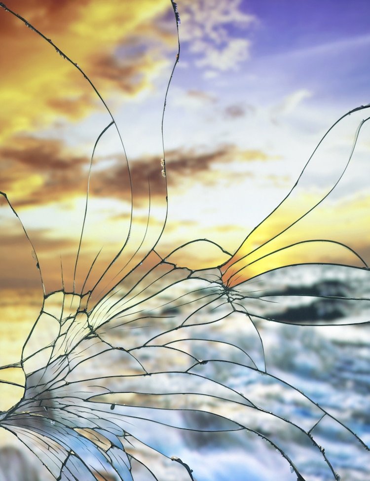 Fotoğrafçı Bing Wright, çarpıcı gün batımlarının kırık yansımalarını yakalamak için parçalanmış aynayı benzersiz bir tuvale dönüştürmüştür.