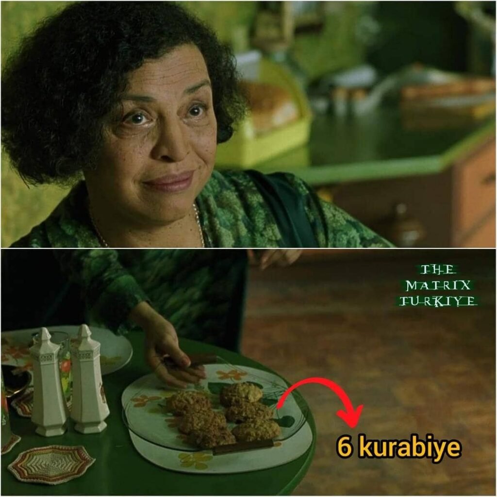 Kâhin pişirdiği kurabiyelerden 6 tanesini tabağa koyuyor ve 1 tanesini Neo’ya veriyor.Bu iki sahnedeki 6 sayısı bize gösteriyor ki Wachowskiler ikinci filmi kafalarında tasarlamışlardı.