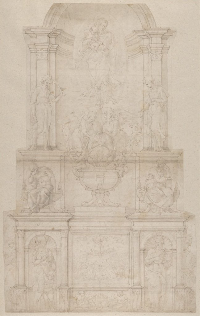 Yazılı kaynaklara ve günümüze kadar gelen taslaklara göre bu kabir, neredeyse on metre uzunluğundaydı. İçerisinde bir şapel barındıracak, üç katmanlı dış cephesinde ise azizlerin, meleklerin, peygamberlerin ve kölelerin gerçek boyutlu heykelleri olacaktı. Michelangelo’nun biyografı Giorgio Vasari’ye göre bu benzersiz tasarımlar, ‘güzelliği ve gururu, süslemelerin zenginliği ve heykellerin bolluğuyla bütün antik emperyal anıtları gölgede bırakacak’ derecede vaat ediciydi.