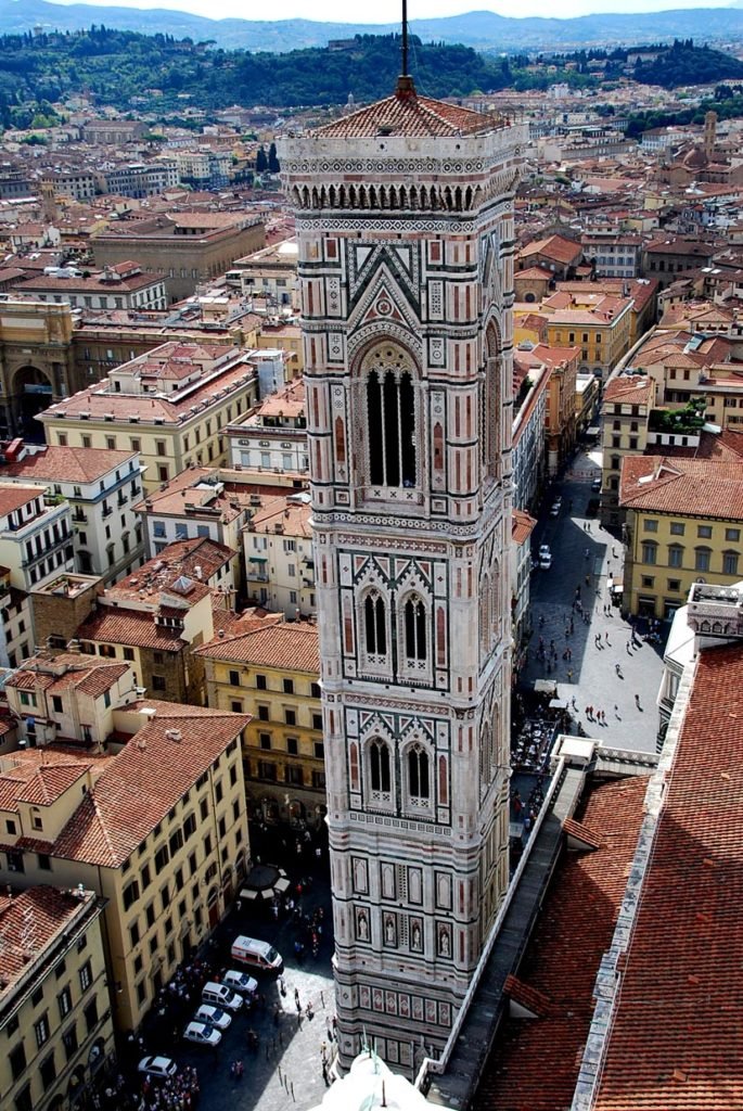 Katedralin çan kulesi ilk olarak 1334 yılında Giotto di Bondone tarafından tasarlanmıştır. Giotto 1337’de öldükten sonra çan kulesi önce Andrea Pisano ve daha sonra Francesco Talenti tarafından tamamlandı. Seksen beş metre yüksekliğindeki kulenin inşası 1359’da bitmiştir. Renkli cephe yeşil, pembe ve beyaz Toskana mermeriyle kaplı. Rölyef dekorasyonları Andrea Pisano tarafından kızıl balçık ile yapıldı.