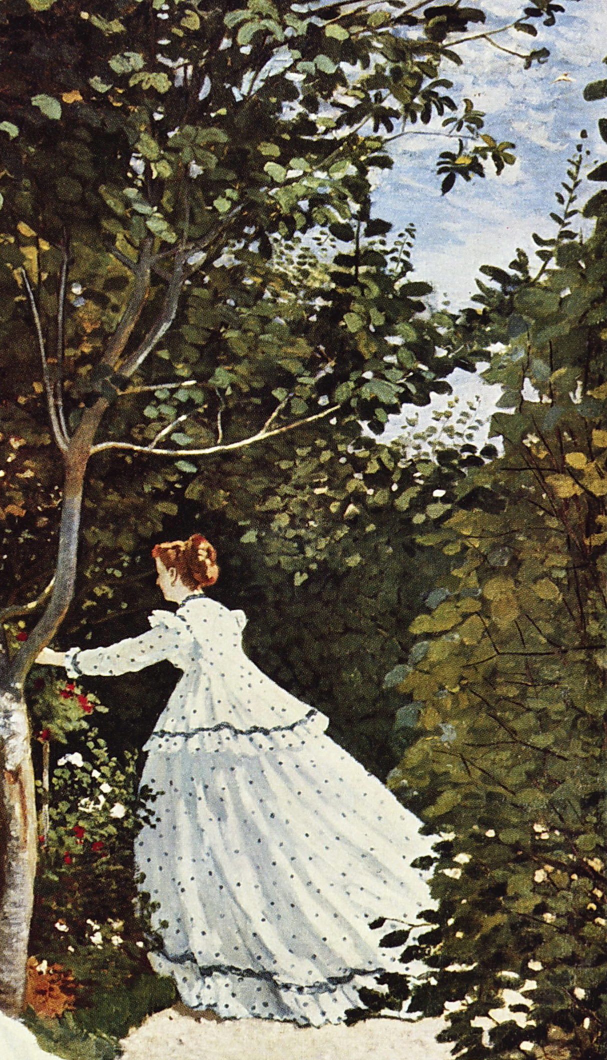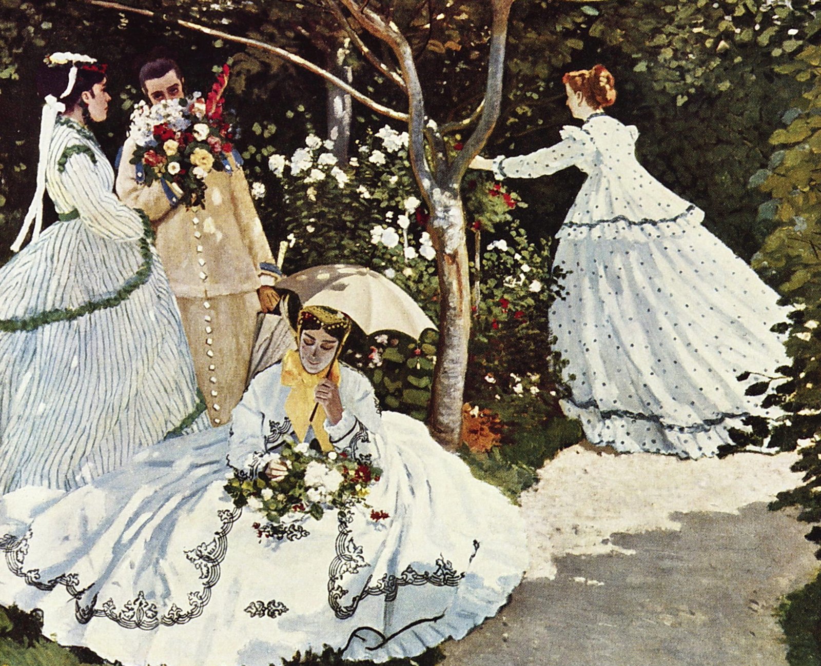 Claude Monet, (1840-1926) Bahçedeki Kadınlar (Femmes Au Jardin) adlı tablosunu 1866 yılında yapmıştır. Bu tablo, ressamın asıl teması olan ışık ve atmosferin karşılıklı etkileşimini yakaladığı ilk eseri olduğu düşünülür. Monet, bahçe yolundaki ağaçların gölgesinde duran beyazlar içindeki dört kadını samimi bir hava içerisinde resmedebilmek adına tarihi temalar için bizzat ayrılmış geniş boyutta bir tuval kullanmıştır. Bu tablo onun en iyi eserleri arasında yer almasa da Monet’yi yeni gelişmekte olan Empresyonist hareketinin öncüsü olarak teşkil etti.