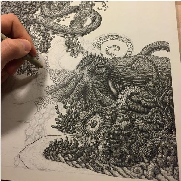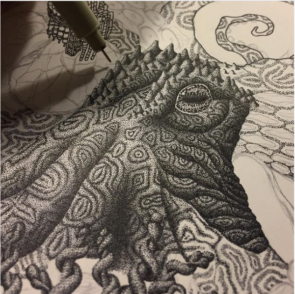 Los Angeles’da yaşayan sanatçı Kyle Leonard (K.A.L), ince uçlu kalemler kullanarak sayısız küçük noktadan oluşan inanılmaz gerçekçi çizimler ortaya koyar. Leonard, özenli tekniğe atıfta bulunarak “Puantilizm benim için bir delilik yöntemidir.” diye açıklar. Sabrı takdire şayan!