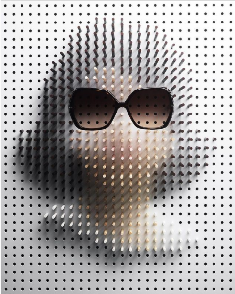 İsveçli fotoğrafçı Philip Karberg, rengârenk boyanmış ve panoya sabitlenmiş binlerce titizlikle düzenlenmiş tahta mandalları kullanarak 3D Puantilizm sanatı icra eder. Sanatçı daha sonra, gözlüklerin arkasındaki ünlüyü gözler önüne sermek için çeşitli ışıklandırma becerilerini kullanarak her bir portreyi fotoğraflar.