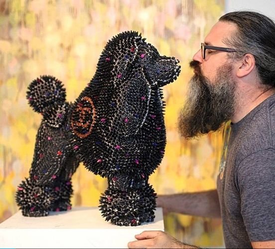 Puantilizm’i bir başka boyuta taşıyan bir diğer sanatçı, müşterisinin karısının 60’larda çekilmiş bir fotoğrafını renkli ve pikselli bir portreye dönüştürmek üzere binlerce renkli boya kalemi kullanan Herb Williams’dır. Sanatçı eserini şöyle açıklıyor: “Resme yakından bakıldığında belirsiz ve soyut, ancak uzaklaştıkça belirginleşiyor.” O zamandan beri boya kalemlerini kullanmaya devam etti ve hatta onlardan gerçek boyutlu köpek heykelleri bile oluşturdu.