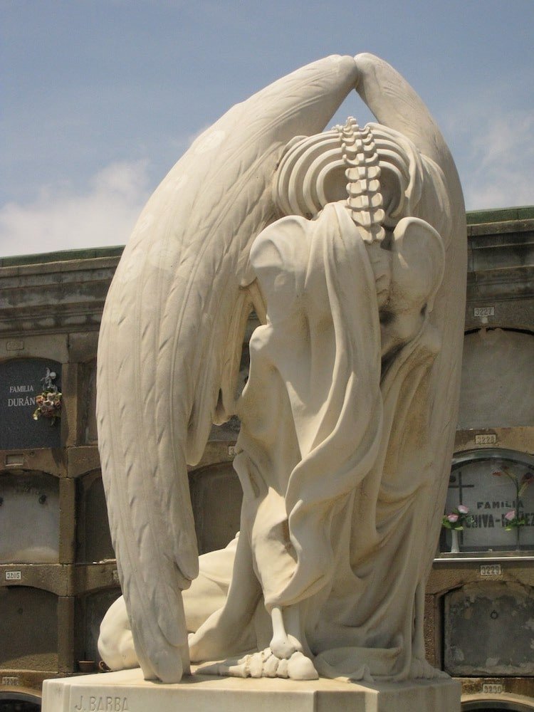 Heykelin kendisi 20. yüzyıla ait olsa da bu etkileyici düşünce, klasik heykelin köklü bir geleneğinin devamıdır. Üzerine ünlü Katalan şair Jacinto Verdaguer’in bir dizesinin kazınmıştır. Tekstil üreticisi Josep Llaudet Soler’in mezarı için 1930’da yapılmıştır. Mezarda yazılı bulunan dize şöyledir: