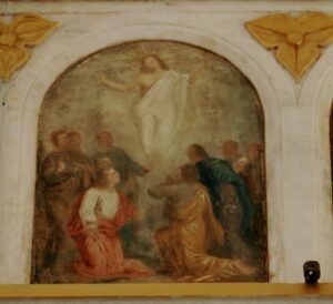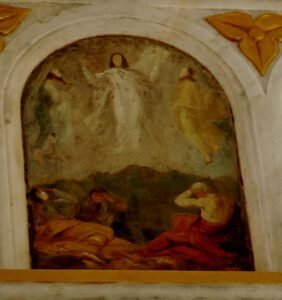 Fresk: Göğe Yükseliş: İsa bu resimde ise havada süzülen beyaz giysiler içinde bir ruhu andırıyor. Havarilerde etrafında onun bir anda göğe yükselmesini şaşkınlıkla karşılayarak ona bakmaktadırlar. İsa’nın kafasında kutsallığın sembolü hal bulunmakta. Ellerini her iki yana açarak öğrencilerini kutsamış ve göklere alınmıştır.
