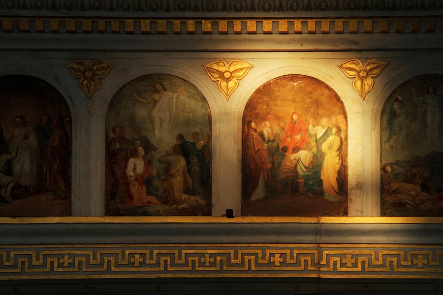 Fresk: Pentekost (50. Gün): Pentekost, Hristiyanlıkta en önemli dini bayramlardan biri olarak kabul edilir. Genelde mayıs ve haziran aylarında, Paskalya’yı takip eden ellinci günde kutlanır. Bu günün önemi ise; Hz. İsa’nın ölmesiyle birlikte ardından göklere alınmasıyla tekrar dirildiğine – kutsal ruhun havarilerin üzerlerine geldiği gün olarak bilinir.