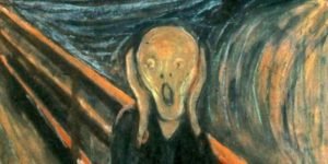 ”Yolda iki arkadaşımla yürüyordum. Sonra güneş batınca gökyüzü aniden kana büründü ve hüznün dokunuşuna benzeyen bir şey hissettim. Hiç kıpırdamadım ve tırabzanlara yaslandım, çok yorgundum. Koyu mavi halicin üzerindeydim, dağılan bulutlar ve damlayan kanla şehir adeta sallanıyordu. Arkadaşlarım yürümeye devam ettiler ama ben göğsümdeki açık bir yarayla korkmuş bir biçimde tekrar durdum. Büyük bir çığlık doğayı delip geçmişti.”