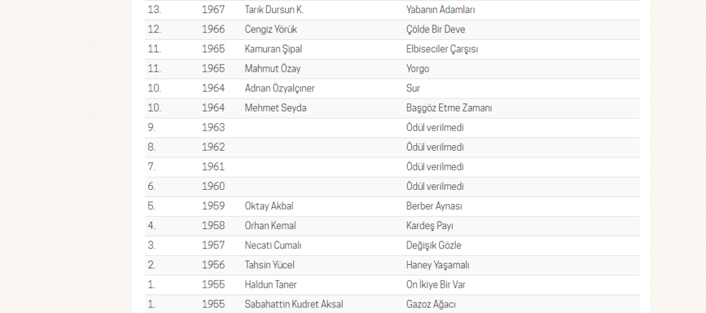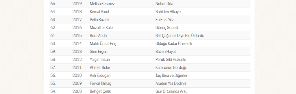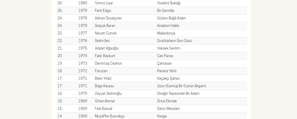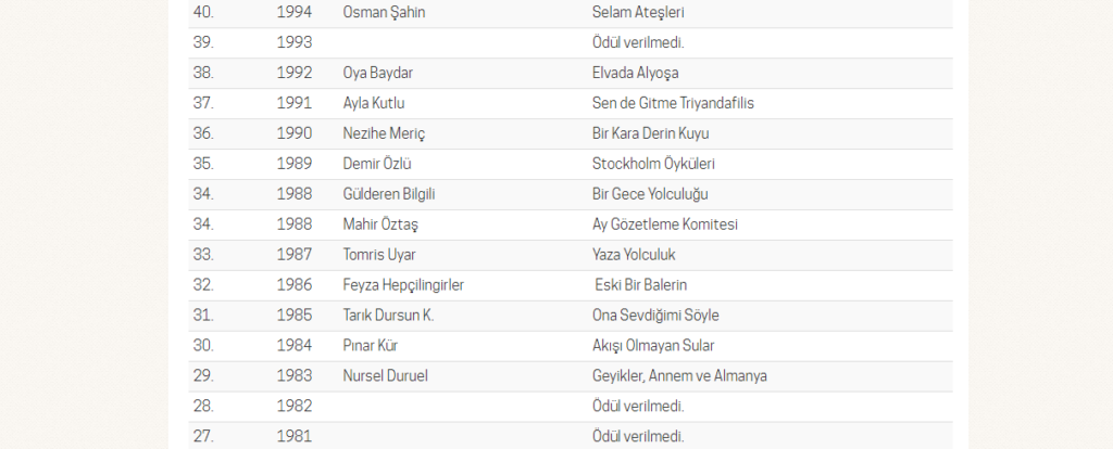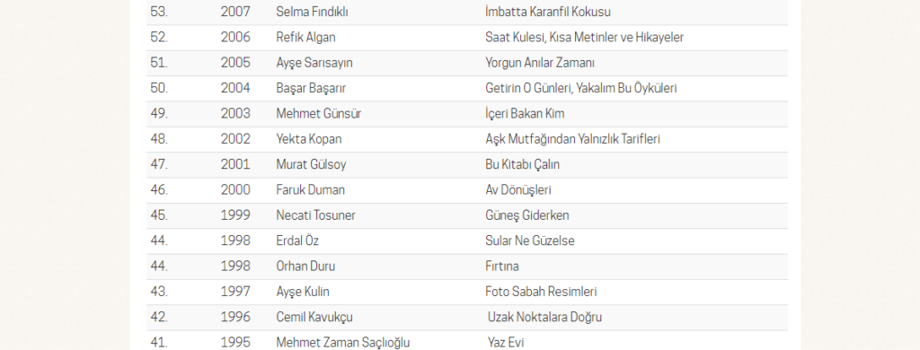 Sait Faik Hikâye Armağanı kazananlarının listesi