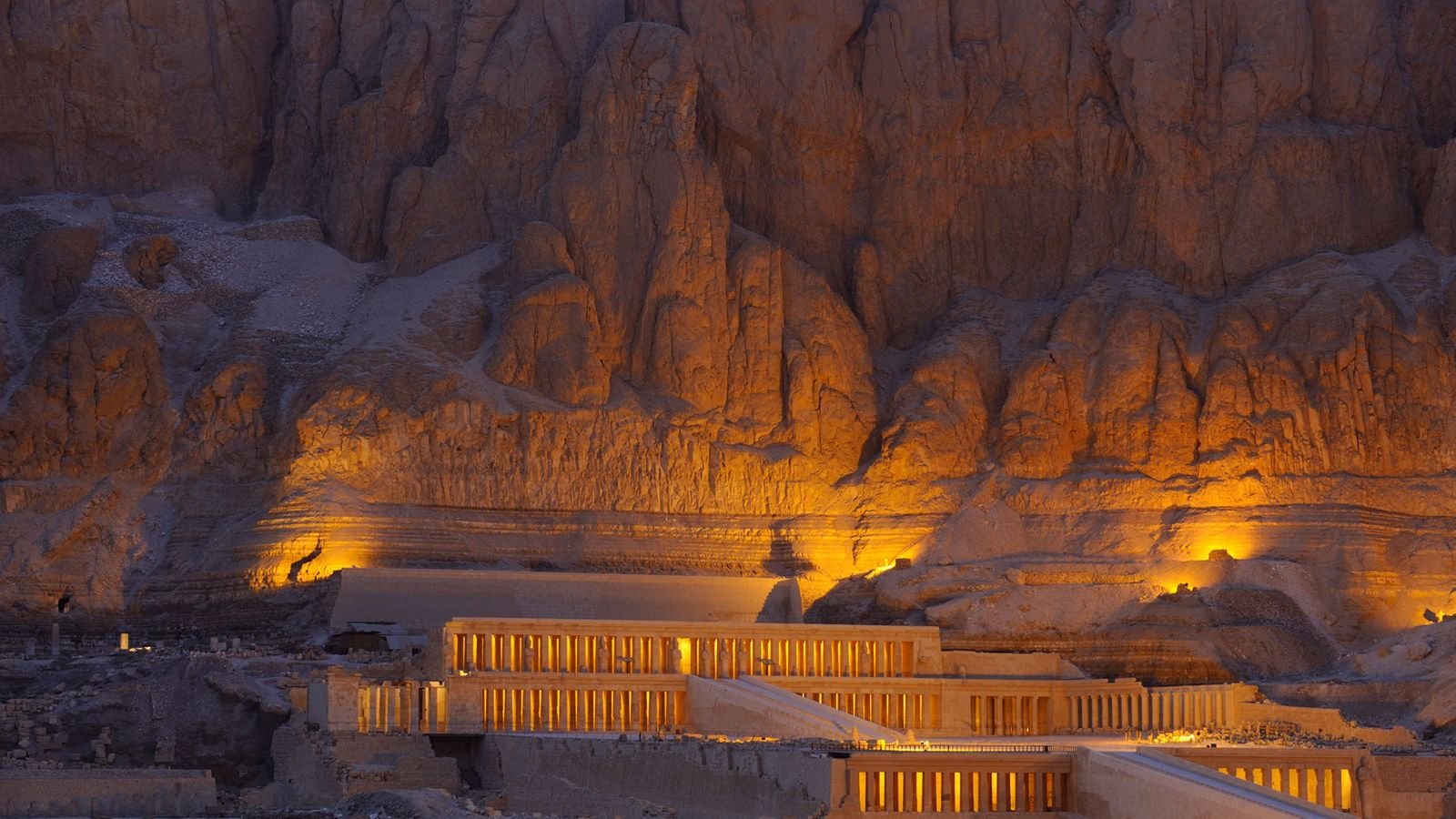 Cenaze Tapınağı’nın görkemli yapısı, büyük kireç taşı kayalıklarının etekleri ve Yukarı Mısır’ın çöl manzarası ile doğal bir uyum içindedir. Krallar Vadisi’nin tam girişini işaret eder. Aynı zamanda 11. Hanedanı’nın (Mısır’ın Orta Krallığı) kurucusu olan büyük Theban prensi Nebhepetre Mentuhotep’in (M.Ö. 2040-1782) eski tapınağıdır ve mezarının bulunduğu yerdedir. Hatşepsut’un tapınağının çarpıcı ve neredeyse modern cephesi, adeta Yunan veya Roma mimarisini çağrıştırıyor. Bugün Deir El-Bahari kayalıklarının eteklerinden bize kalan, Varşova’daki Polonya Bilimler Akademisi tarafından üstlenilen itinalı bir inşaat çabasıdır.