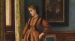 En iyi bekleyiş resimlerinin arasında, William Ladd Taylor (1854-1926) tarafından yapılan bu zarif yağlı boya eserin ayrı bir yeri var. Sol alt köşedeki çalgı aleti ile yanında duran kağıtları gördüğümüzde beklenen sevgiliye yazılan şiirler olduğunu düşünmek pek de yanlış olmayacaktır. Philadelphia, Pennsylvania’daki Curtis Yayınevi’nin Saturday Evening Post’ta* yayımlanması için yapıldığı düşünülüyor.