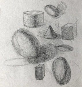 Temel formları ısınma egzersizi olarak çizin (aşağıdaki çizim kitabımdaki alıntıya bakın).