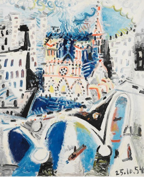 İspanya’da doğmuş olmasına rağmen Picasso 79 yıllık kariyer hayatının çoğunu Fransa’da geçirmiştir. Modernist öncüleri gibi o da zamanının bir kısmını güneşli güney Fransa’da ve bir diğer kısmını Paris’te geçirmiştir. Burada Notre Dame de Paris’i (1954) resmetmiştir.