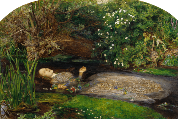 Vincent van Gogh’un Ağaçlı Çalılıkta İki Figür‘ündeki ağaç kompozisyonları, çalılıklar ve çiçekler için kullanılan enerjik fırçalarla tezat oluşturan çok tekrarlayan bir vuruş sağlar.