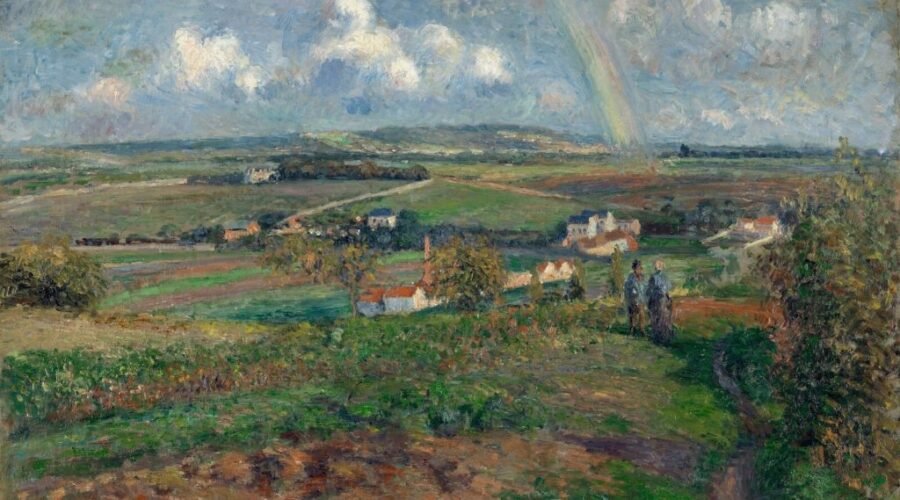 Camille Pissarro’nun oldukça ilginç resim portföyü bulunmaktadır. Pissarro çalışmaları, Paris’in kozmopolit görüntüsü ile Pontoise’ın kırsal manzarası arasında bölünmüştür. Hem şatafatlı salonlara hem de güneşli parklara kolayca uyan bir sanatçıdır. Pontoise’da Gökkuşağı, Fransız kırsalının cazibesini sergileyen bir resimdir. Eser, şimdi Kröller-Müller…