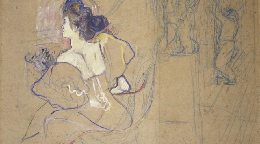 Henri Toulouse Lautrec Paris’in gece hayatı tasvirleriyle ünlüdür: gece kulüpleri, tiyatrolar, eğlence yerleri. Bize çöküşün olduğu dünyayı ve arkadaşlarının, ilham perilerinin, patronlarının çarpıştığı şehirdeki rahatsızlıktan kaçışı gösterdi. Bu eskizde, birinci planda çizim hatları daha belirgin olan Misia Natanson’ı ve ikinci…