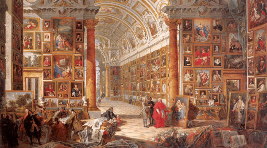 Bu haftanın tablosunu, Giovanni Panini’den “Kardinal Silvio Valenti Gonzaga Koleksiyonu ile Resim sergisinin İçi” olarak belirledik. Hiç kuşkusuz bu tablo, sanat eserlerinin bir araya toplandığı inanılmaz bir manzara sunuyor. Gördüğümüz tablonun içindeki her resmin gerçekten bir kişinin sanat koleksiyonuna ait…