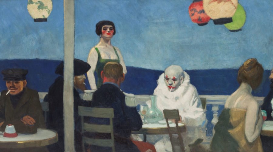 Kalabalığın içindeki yalnızlık. Fransa’daki herhangi kafeden birindeyiz. Bize yansıtılan bu karede yedi insanın masaları doldurduğunu görüyoruz: makyajlı, ayakta dikilen bir kadın, beyaz boyamalı bir palyaço, apoletli bir asker, sakallı bir Bohem, insanlarla herhangi bir etkileşime girmek istemediğini belli eden aristokrat…
